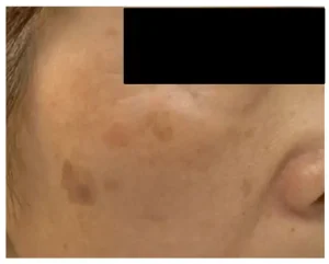 ノーリスによる「シミ」治療は、照射直後から化粧が可能なことが多く、日常生活にほとんど支障をきたしません。治療後1〜2週間程度で薄いかさぶたが自然に剥がれ落ち、その下から新しい健康な肌が現れます。従来のIPL機器と比較して、照射後の赤みや腫れも軽度で、回復が早いことが特徴です。一方、「赤ら顔」や「毛細血管拡張」に対する治療では、強く当てることでより効果を高めることが可能です。その場合、痛みや照射後の紫斑(内出血)が生じることもありますので、十分なカウンセリングにより照射設定を決めていきます。
